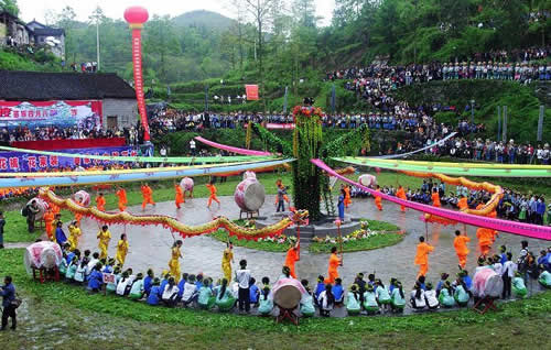 鮮麗奪目的苗族服飾,情調(diào)別致的攔門酒,風(fēng)格獨特的卡鼓、攔路歌、邊邊場,會使你耳目一新,如癡如醉;還有傳統(tǒng)節(jié)日"四月八"的跳月跳花,"六月六"的山歌對唱,又會使您心動神搖,嘆為觀止。