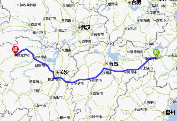 現(xiàn)在位置:張家界旅行社->交通指南->自駕車路線 -> 衢州到張家界旅游自駕車線路,衢州去張家界自己開車要多長時間,有多少公里