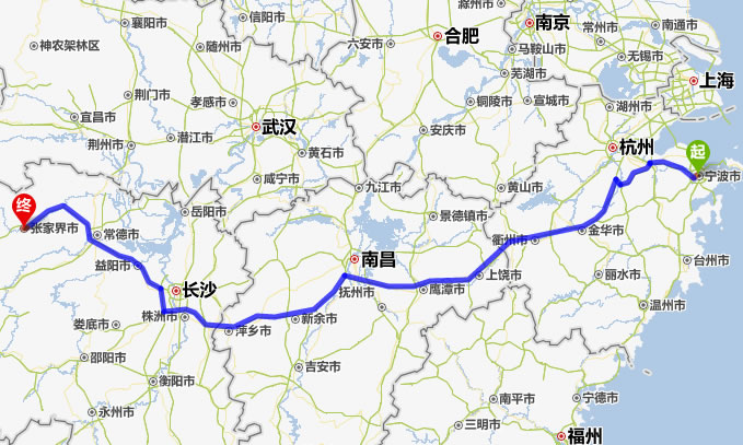 現(xiàn)在位置:張家界旅行社->交通指南->自駕車路線 -> 寧波到張家界旅游自駕車線路,寧波去張家界自己開車要多長時間,有多少公里