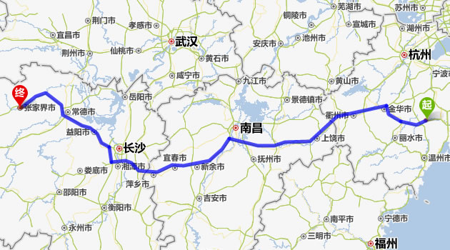 仙居去張家界自駕車(chē)自助游線(xiàn)路圖全程高速):